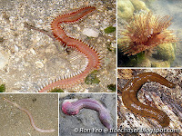 - Sea cucumbers - Some sea cucumbers may be mistaken for earthworms, peanut worms and other annelid worms due to their long and slim bodies, but can be distinguished by their oral tentacles and tube feet.