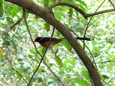 We were rather fortunate to see this white-rumped Shama (Copsychus malabaricus), a rather rare native bird with a lovely voice. Unfortunately, this bird was often trapped by poachers for sale at the songbird market, and in fact, we bumped into some of the poachers today!